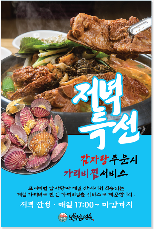 감자탕가리비찜세트(저녁특선) 35,000 | 얼큰뼈국 11,000 | 가리비술국 15,000